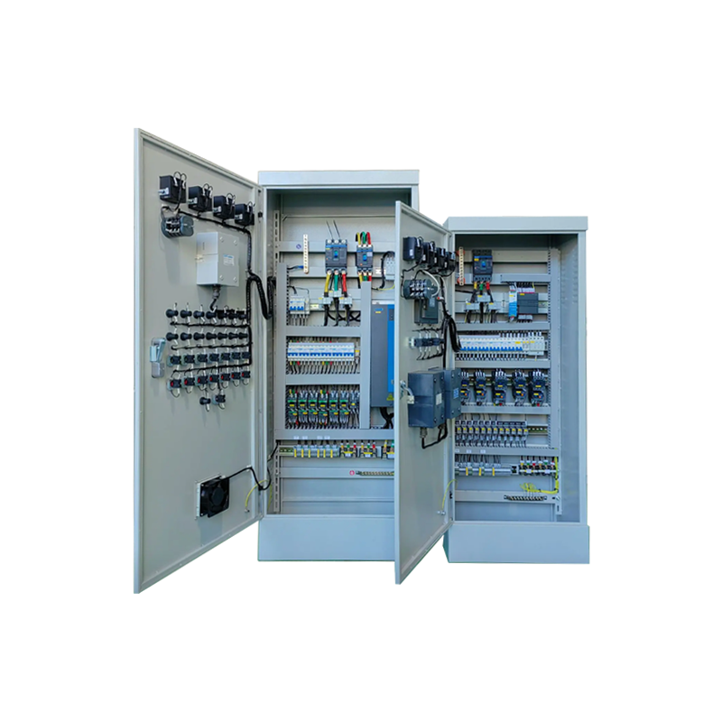 PLC控制柜(可编程控制箱),一般有污水处理控制柜、风机控制箱、恒压供水柜、水泵控制柜等,集PLC、工业平板电脑和电气控制回路于一体的自动化控制设备。它具有结构紧凑、工作稳定、功能齐全。可以根据实际控制规摸大小,进行组合,既可以实现单柜自动控制,也可以实现多柜通过工业以太网或工业现场总线网络组成集散(DSC)控制系统。PLC控制柜能适应各种大小规模的工业自动化控制场合。现已广泛应用在电力、冶金、化工、造纸、环保污水处理等行业中。