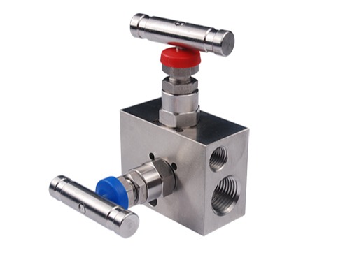 二阀组是与压力变送器或压力表配套使用。其作用是将差压变送器正、负压室与引压点导通或切断,或将正、负压室切断或导通。一般用于现场控制仪表上,为仪表提供多通路,减少安装工作量,提高系统可靠性。与变送器过程接口连接,规格一般有1/2NPT和1/4NPT两种。入口部分与管道规格相同,一般有φ12,φ14,φ16,φ18几种。