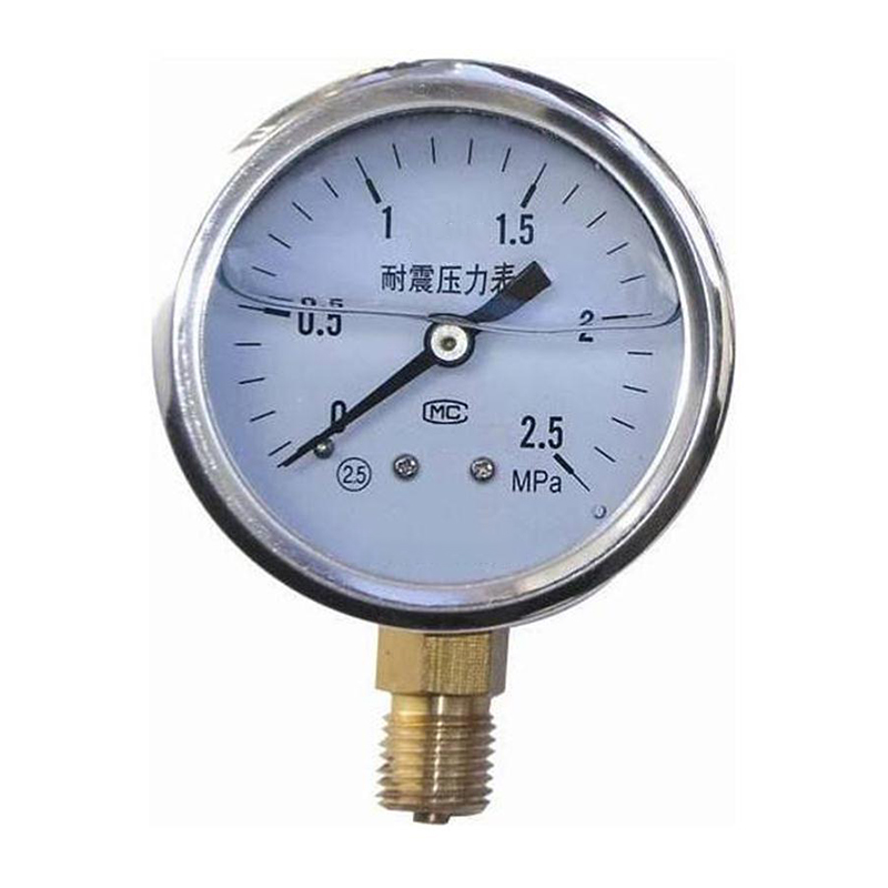 不锈钢耐震压力表外壳与内部原件均采用不锈钢材质制成,在表体内充装硅油,使压力表的指针起到减震、抗震的作用。
