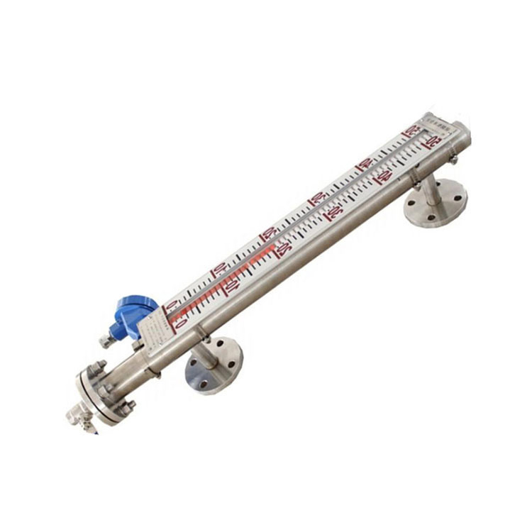 远传磁翻板液位计是基本型与远传变送器两部分的组合即可实现信号远传、液位报警及控制功能。液位远传装置由UR型电阻传感器和UB型R/I转换模块组成,该变送器的传感器以捆绑的形式固定在UHZ型磁翻板液位计的主导管外侧,使其处于液位计同一磁耦合系统中。当磁性浮子随液位上下移动时,对应液位位置的干簧管受浮子内磁场的作用吸合,电阻链阻值发生变化,通过转换模块将变化的电阻信号转换成二线制4~20mADC标准信号输出,该信号可方便地与电动III型仪表、显示仪配套使用,亦可与光柱指示、数字显示调节报警仪配套使用,从而达到显示、控制、调节和报警的目的。远传磁翻板液位计具有直观、醒目、性价比高、耐温、耐压、防腐、防爆的特点,广泛应用于电力、石油、化工、冶金、环保等行业过程中的液位测量及自动化控制。远传磁翻板液位计几乎可以适用于各种工业自动化过程控制中的液位测量与控制。